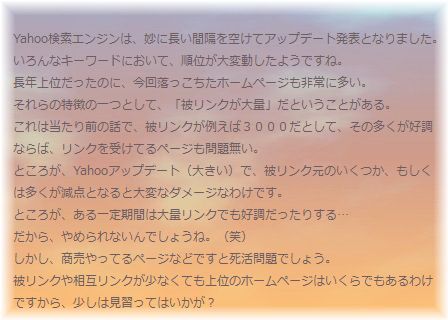いらっしゃいませ!(こちらではリンクなどの濃い対策が書いてありますので紹介します…)